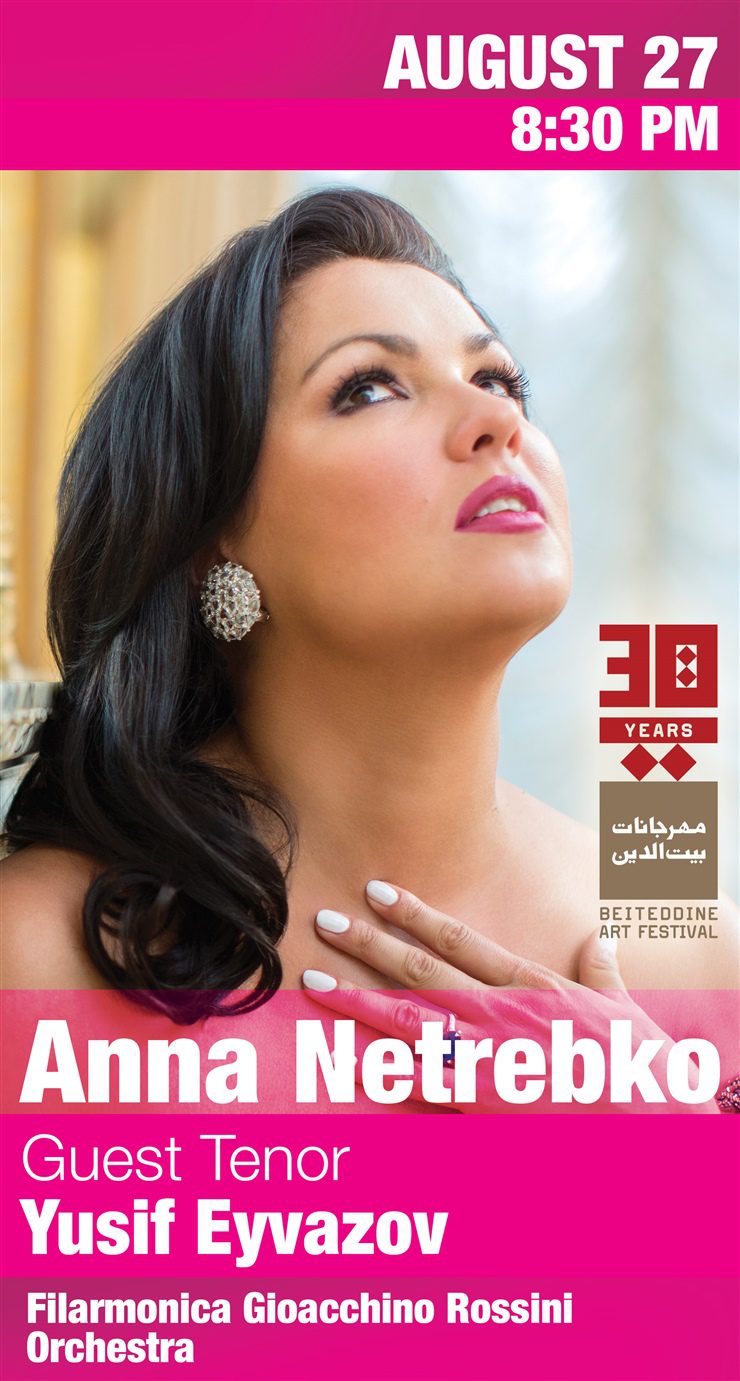 The prodigiously gifted soprano Anna Netrebko is considered as the biggest international star the opera world has had since Luciano Pavarotti. Netrebko has appeared in all the world’s great opera houses including the Metropolitan Opera, London’s Royal Opera House, La Scala, Vienna State Opera, Paris Opera, Berlin State Opera, and the Mariinsky Theatre. She will be in Beiteddine after her appearance at the Salzburg Whitsun Festival.